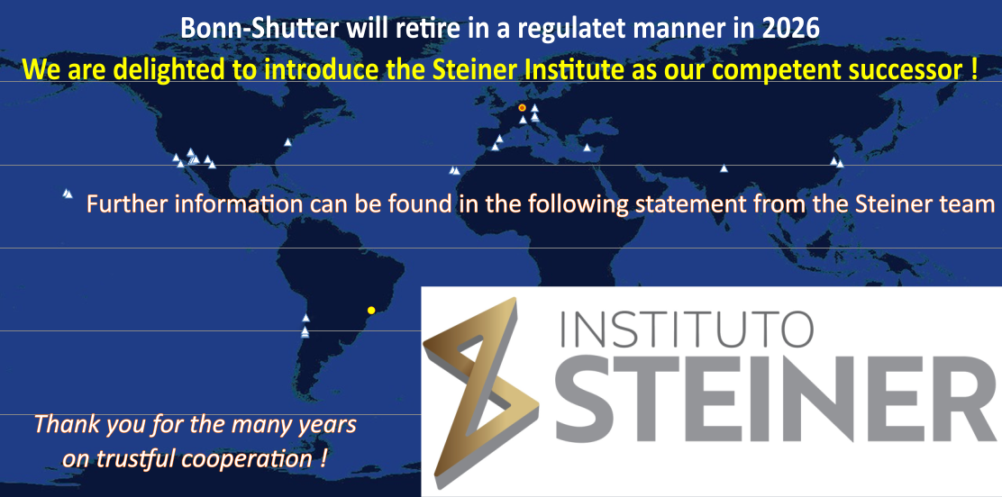 Under a formal Technology Transfer Agreement, the Steiner Institute will manufacture and supply shutters based on Bonn-Shutter’s original designs, specifications, and quality standards, ensuring the same performance and reliability that have characterized our products for decades. The Steiner Institute will also develop new solutions and provide maintenance and support for existing Shutter models in use worldwide.